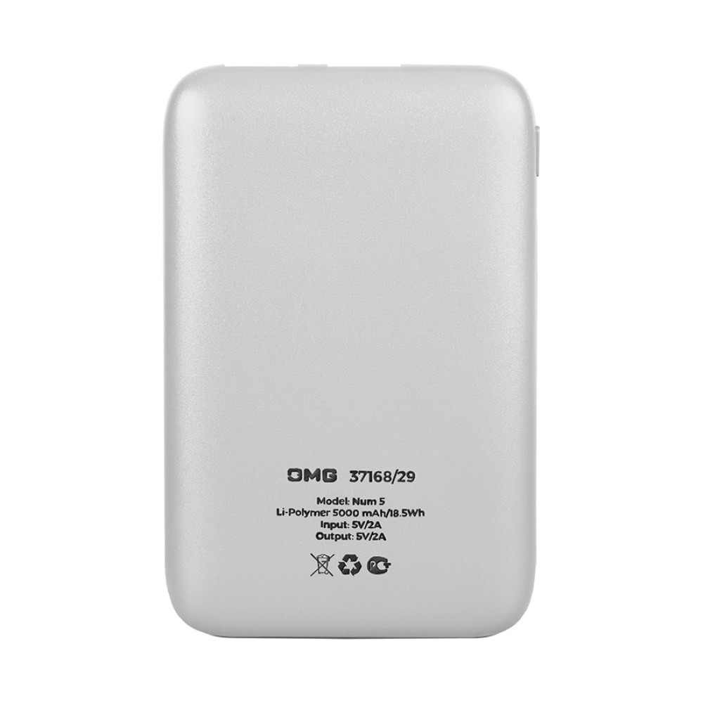 Универсальный аккумулятор Num 5 (5000 мАч), белый, 10,2х6.3х1,2 см
