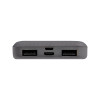 Внешний аккумулятор имеет пластиковый матовый корпус. Пауэрбанк заряжается через универсальный порт Type C или Micro-USB и отдает энергию через два классических порта USB. Благодаря встроенному в корпус индикатору уровня заряда батареи, удобно следить за расходом батареи. Емкость батареи: 10 000 мАч Тип батареи: литий-полимер Материал корпуса: пластик Входные порты: Micro-USB, Type-C Выходные порты: USB Входное напряжение Ток: 5 В 2 A Выходное напряжение Ток: 5 В 2 A Провод для зарядки в комплекте Индикатор уровня заряда батареи, 4 светодиода В комплект входит: 1. Универсальный аккумулятор2. USB кабель с разъемами USB-A и Type-C для зарядки