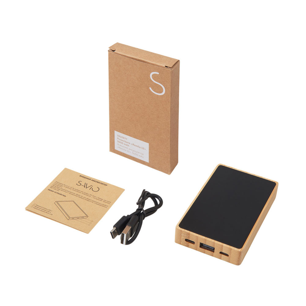 Внешний аккумулятор с подсветкой лого Reedia S2, 5000 mAh, бамбук, черный