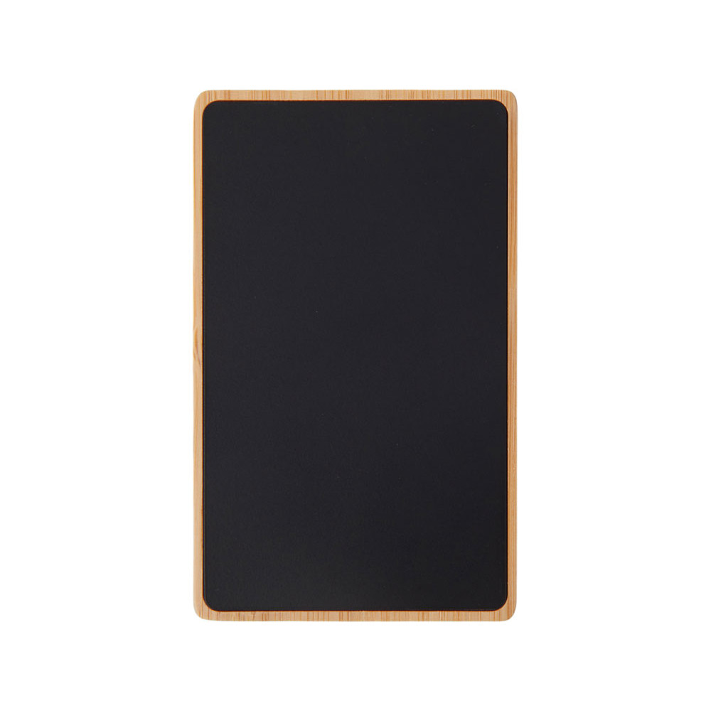 Компактный и стильный внешний аккумулятор ёмкостью 5 000 мАч — идеальный спутник для повседневных дел и коротких поездок. Его корпус сочетает в себе натуральный бамбук и переработанный ABS-пластик, что делает устройство не только более экологичным, но и визуально премиальным. Особый шарм ему придаёт встроенная панель с белой подсветкой с возможностью нанесения логотипа — ваш бренд или инициалы мягко засветятся в темноте, привлекая внимание и подчеркивая индивидуальность. Это не просто power bank — это экосознательный аксессуар, который заряжает ваши гаджеты и вдохновляет окружающих.