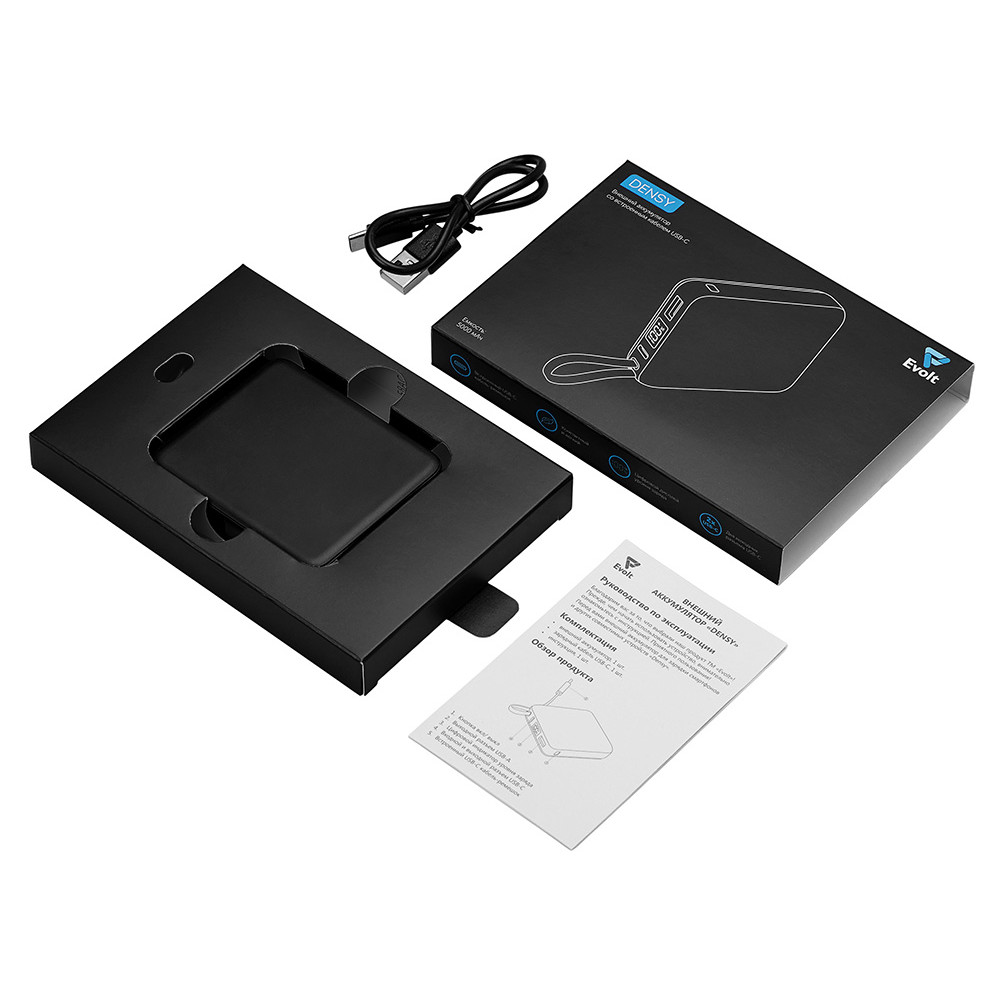 Внешний аккумулятор со встроенным кабелем USB-C Дэнси, 5000 мАч, черный