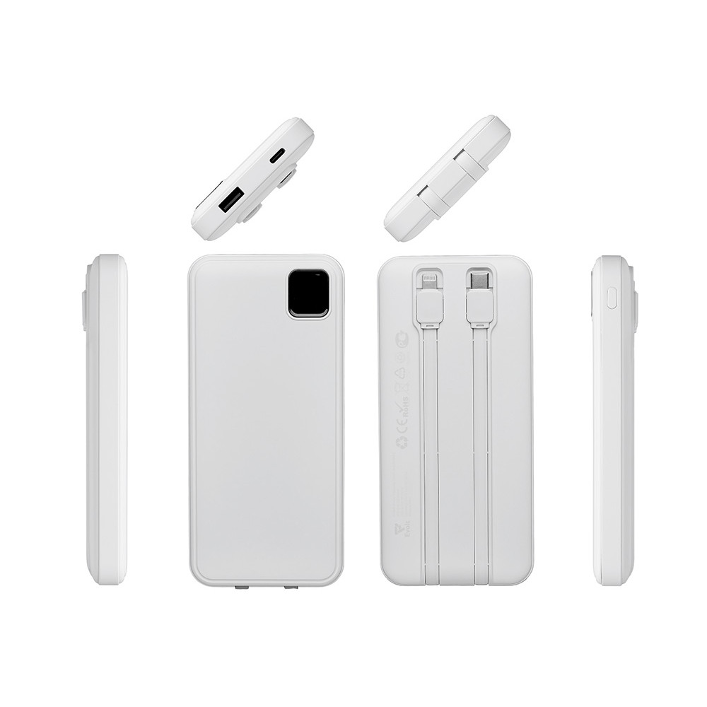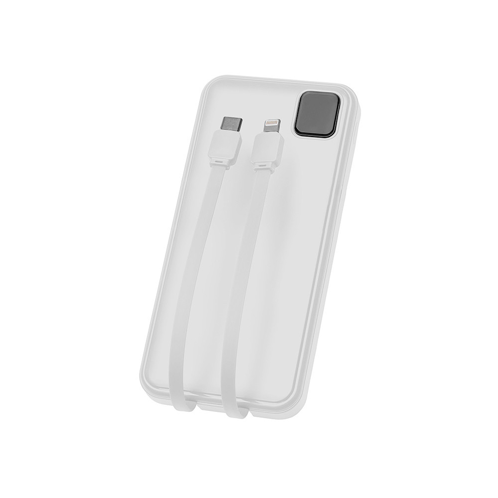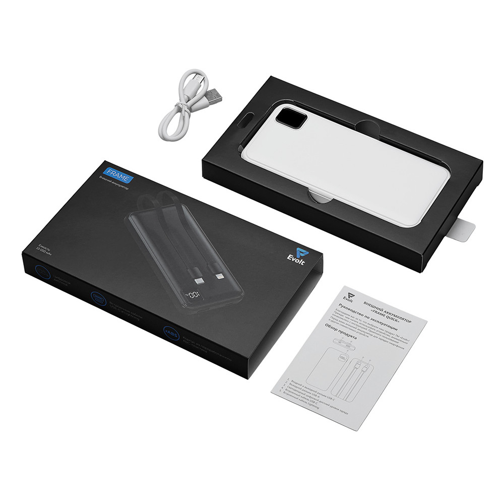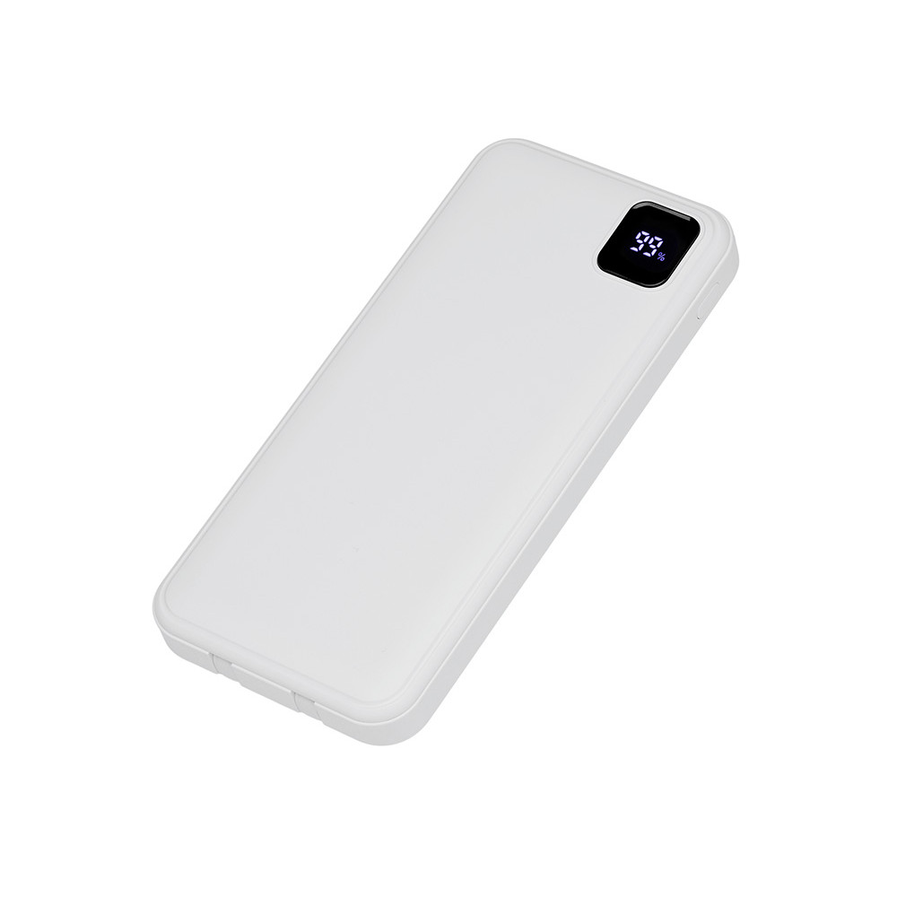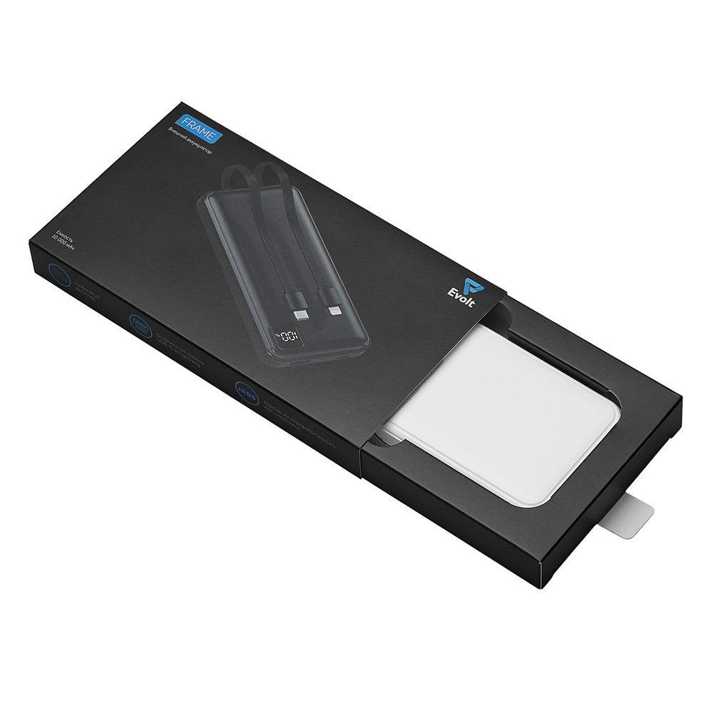 Удобный внешний аккумулятор с встроенными кабелями USB-C и Lightning — ваш надежный партнер в путешествиях, на встречах и в повседневных задачах. Цифровой дисплей в реальном времени показывает точный остаток заряда, а компактные габариты делают его таким же удобным, как смартфон. Прочный корпус из переработанного АБС-пластика и емкость 10000 мАч обеспечивают долгую работу даже при интенсивном использовании. Идеальный выбор для тех, кто ценит комфорт и функциональность в одном устройстве. Продуманная упаковка: для открытия просто потяните за язычок, и появится гаджет с нанесением.