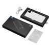 - Компактный размер, сопоставимый с телефоном — легко помещается в карман, сумку или портфель.