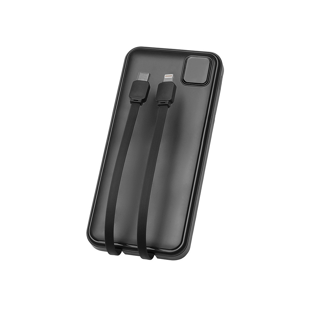 Внешний аккумулятор со встроенными кабелями Фрэйм, 10000мач, черный