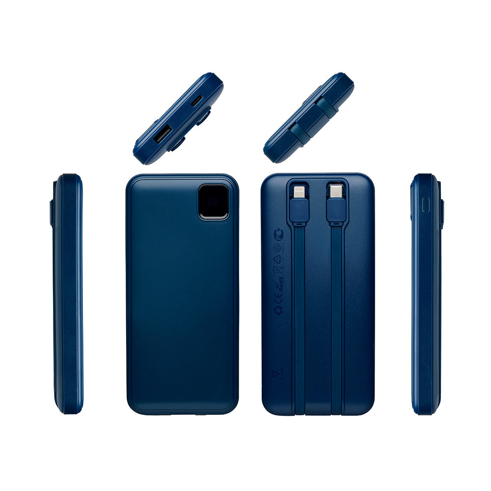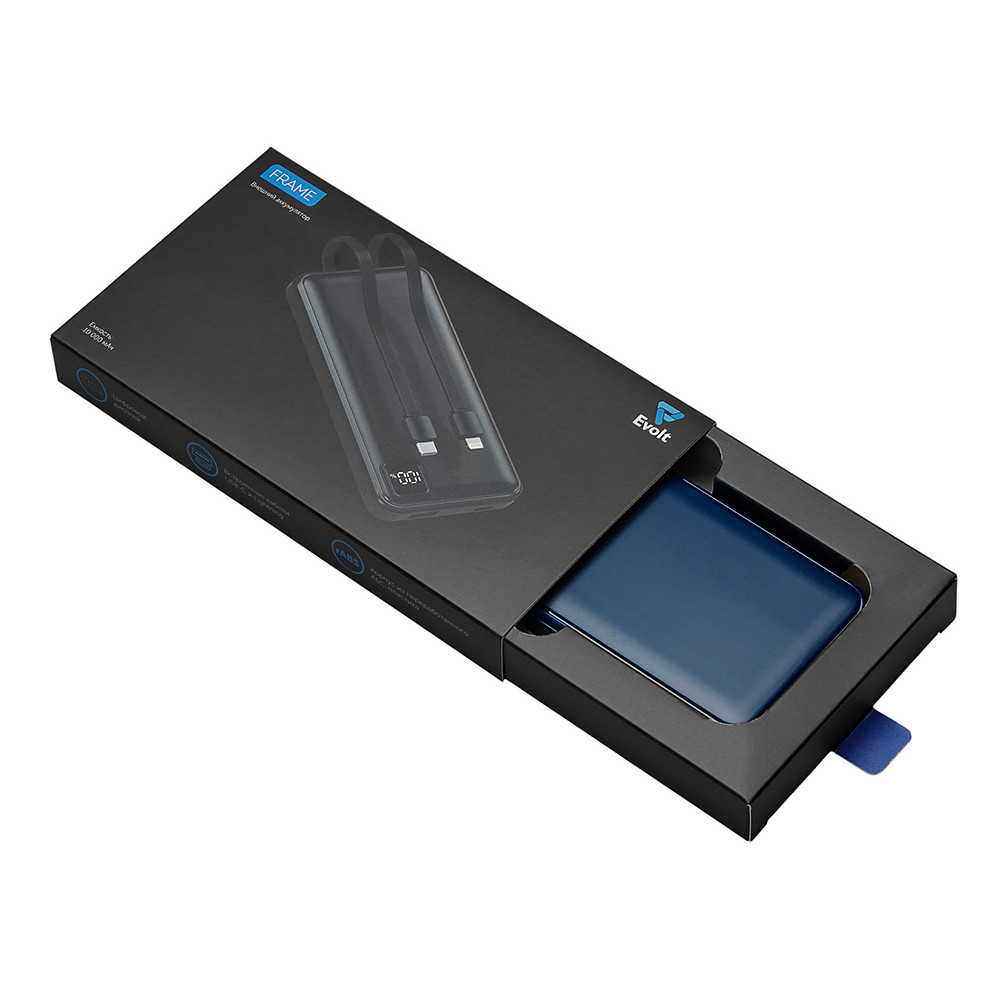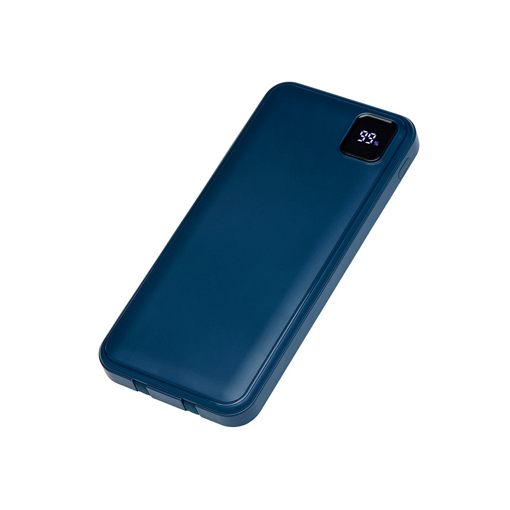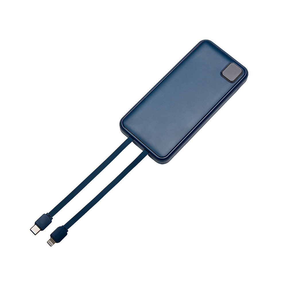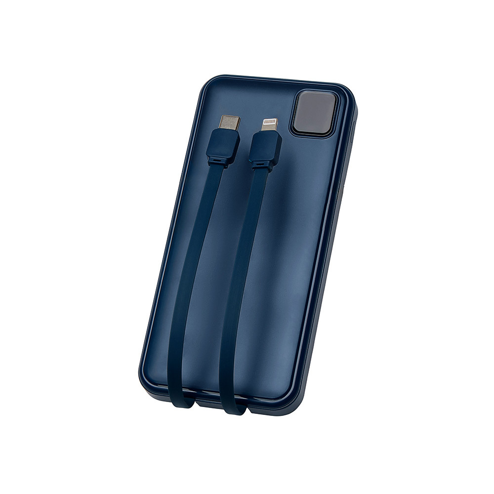 Удобный внешний аккумулятор с встроенными кабелями USB-C и Lightning — ваш надежный партнер в путешествиях, на встречах и в повседневных задачах. Цифровой дисплей в реальном времени показывает точный остаток заряда, а компактные габариты делают его таким же удобным, как смартфон. Прочный корпус из переработанного АБС-пластика и емкость 10000 мАч обеспечивают долгую работу даже при интенсивном использовании. Идеальный выбор для тех, кто ценит комфорт и функциональность в одном устройстве. Продуманная упаковка: для открытия просто потяните за язычок, и появится гаджет с нанесением.