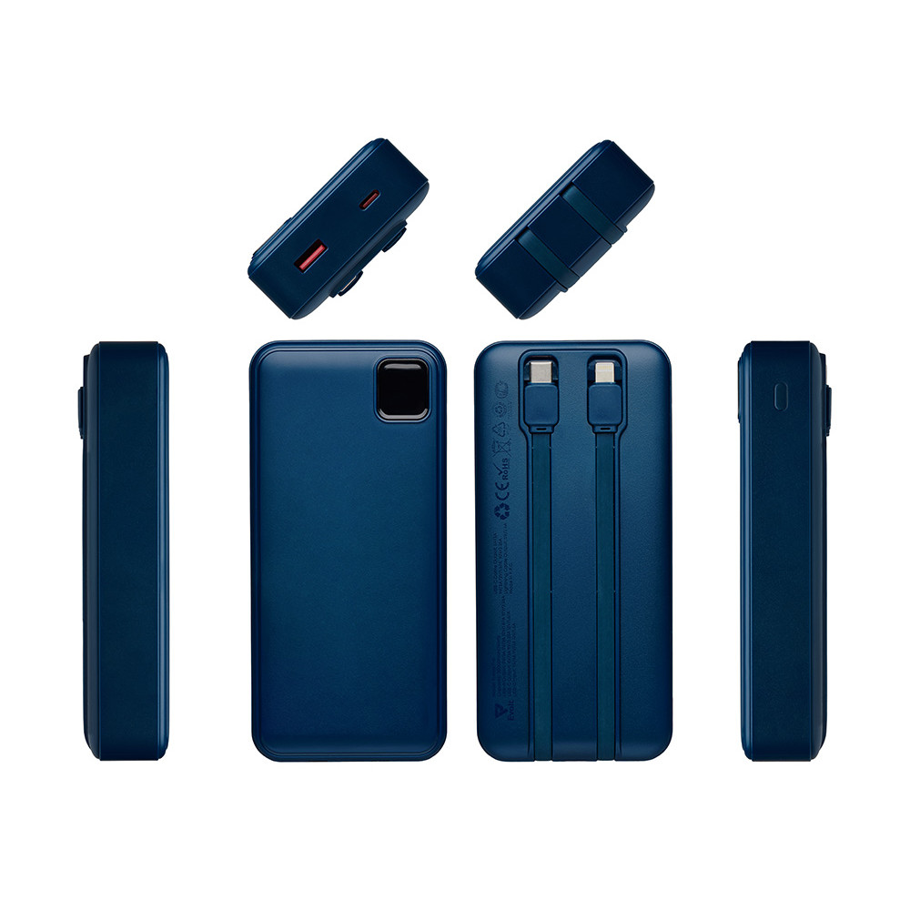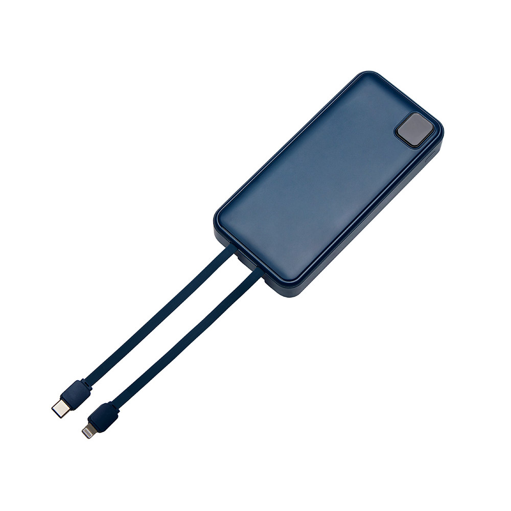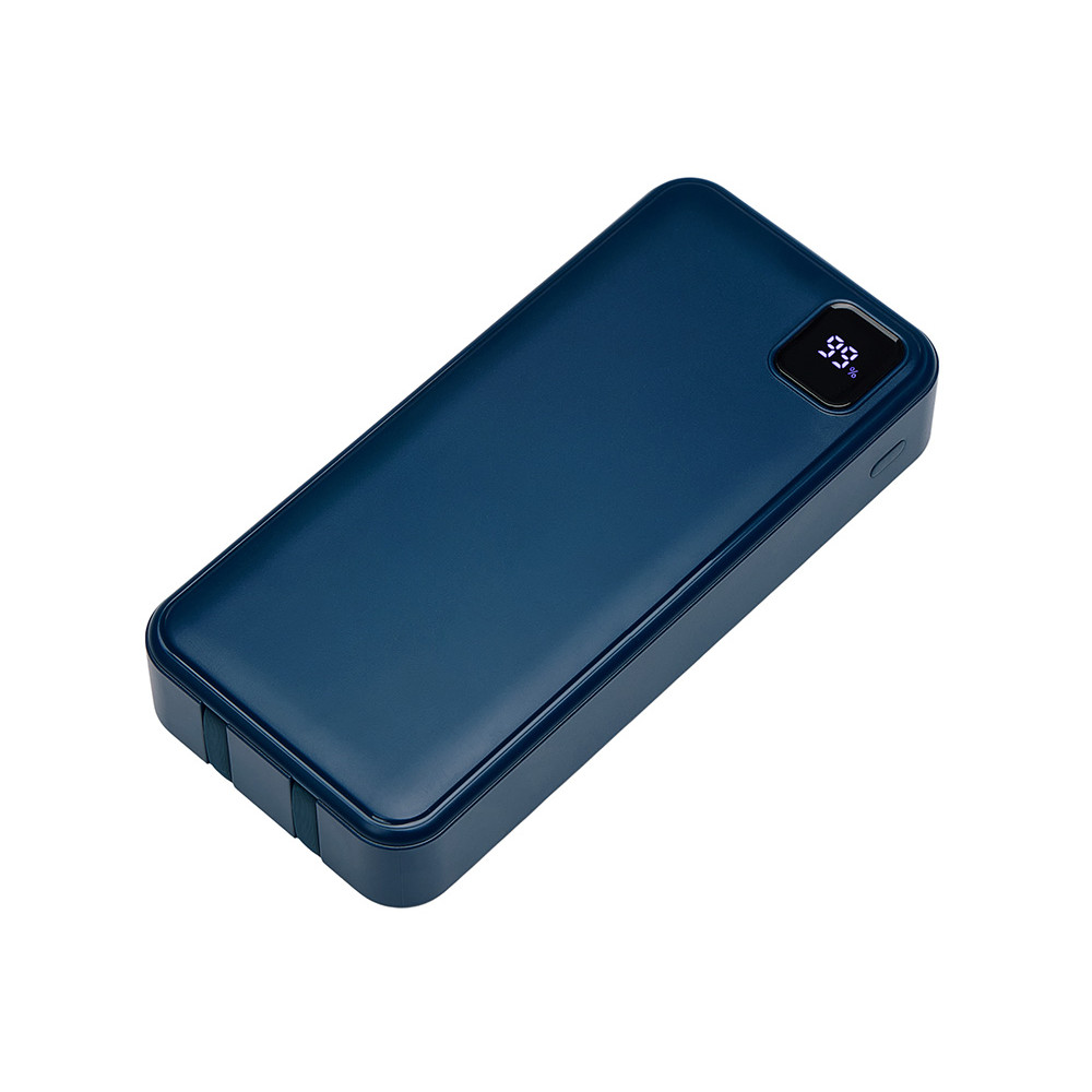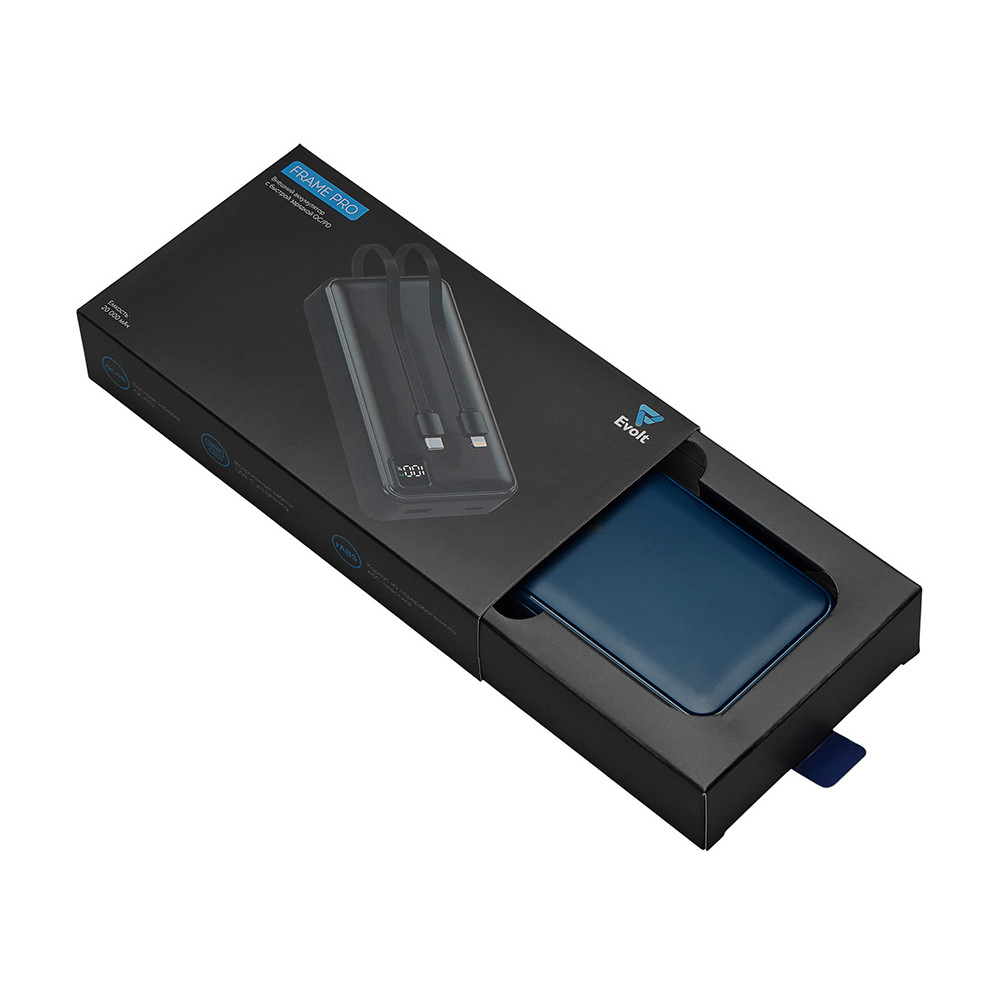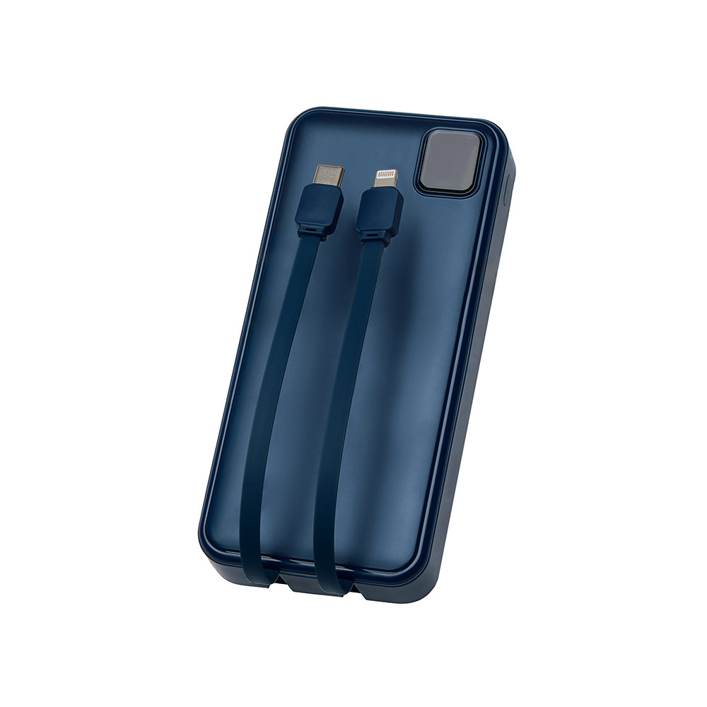 Внешний аккумулятор со встроенными кабелями Фрэйм Про, быстрая зарядка, 20000мач, тёмно-синий