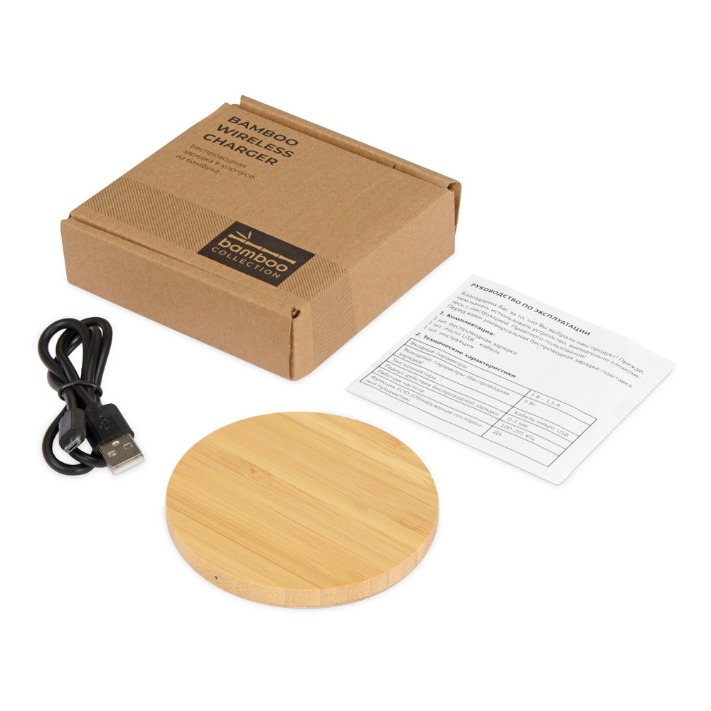 Беспроводное зарядное устройство из бамбука Cap, натуральный