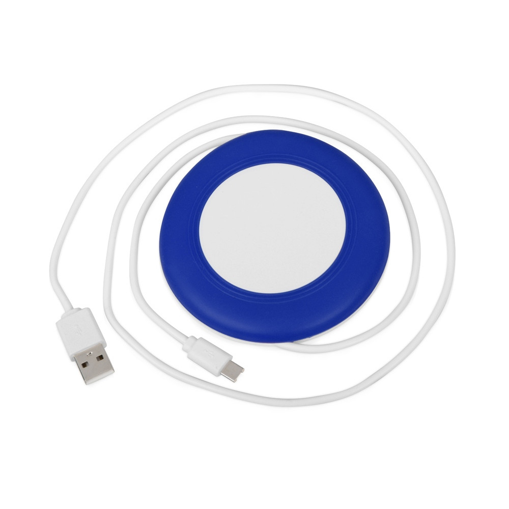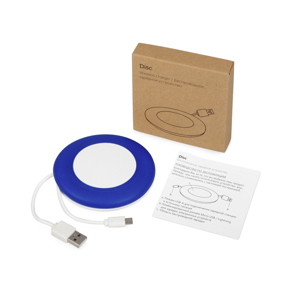 Беспроводное зарядное устройство со встроенным кабелем 2-в-1 Disc, синий