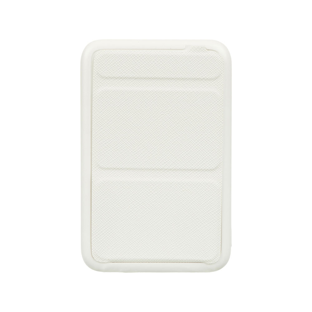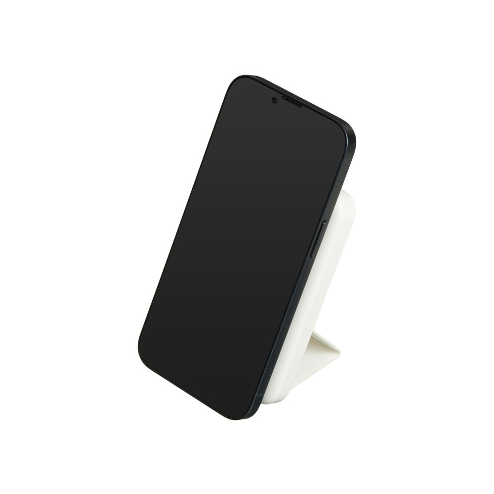 Сзади расположена пластичная складная подставка из качественного полиуретана с зернистой текстурой. В развернутом виде на столе подставка позволяет пользоваться смартфоном одной рукой, при этом, благодаря магнитным держателям, смартфон может быть расположен как вертикально, так и горизонтально.